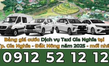 Giá cước các dịch vụ taxi tại Tp. Gia Nghĩa - Đắk Nông 2025